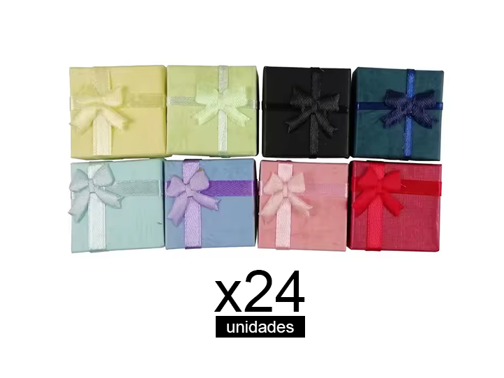 PACK 24 CAJAS REGALO p/JOYERIA CARTON RECTANGULAR c/MOÑO 1 COLOR (17B5) (CS2)