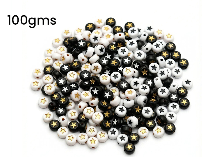 CUENTAS PLASTICAS PASTILLA BLANCA ESTRELLA DORADA 100gms (DB)