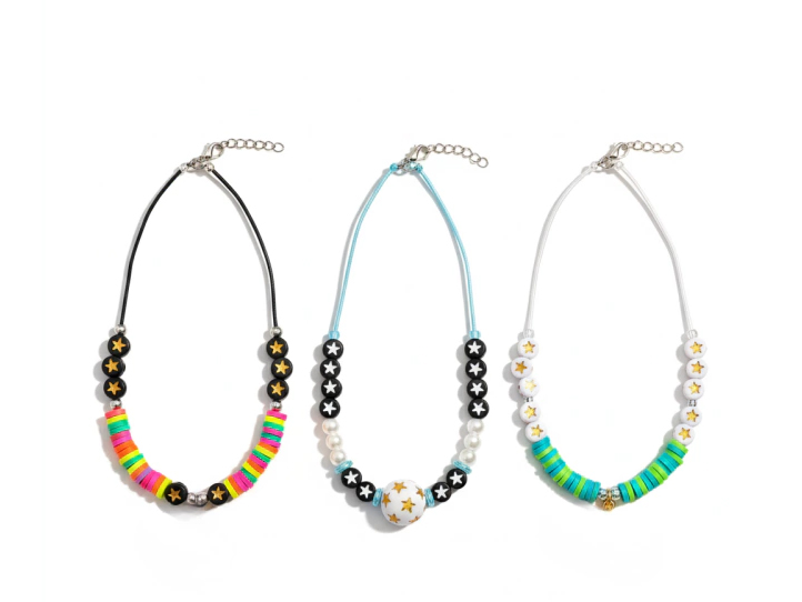 Cuentas plasticas pastilla blanca estrella dorada