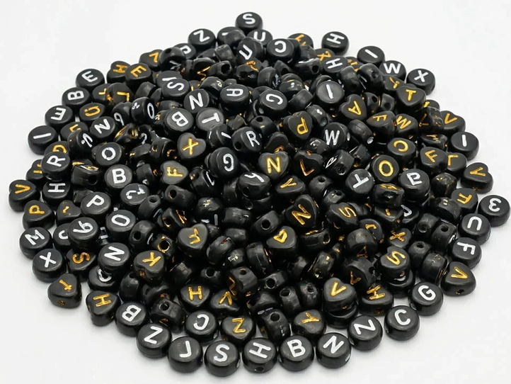 Cuentas plasticas pastilla negra letra blanca Cuentas plasticas pastilla negra letra blanca