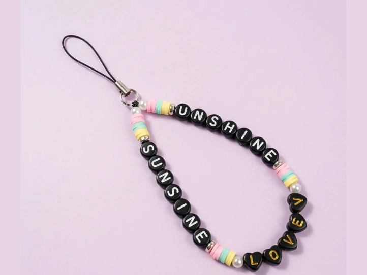 Cuentas plasticas pastilla negra letra blanca