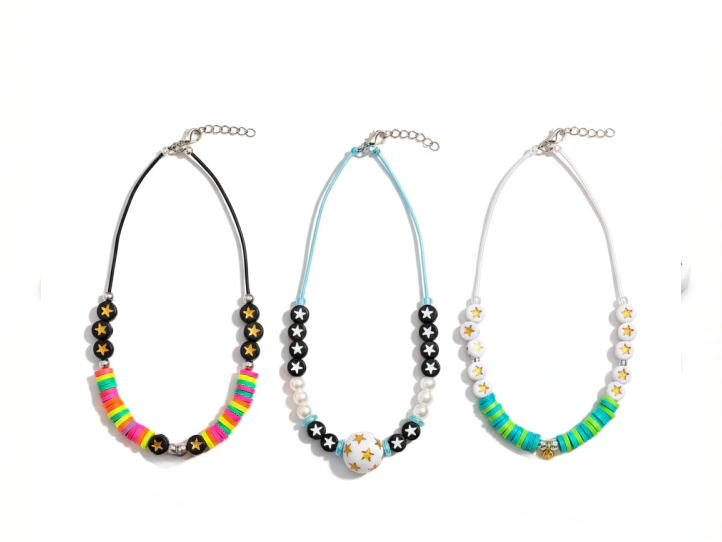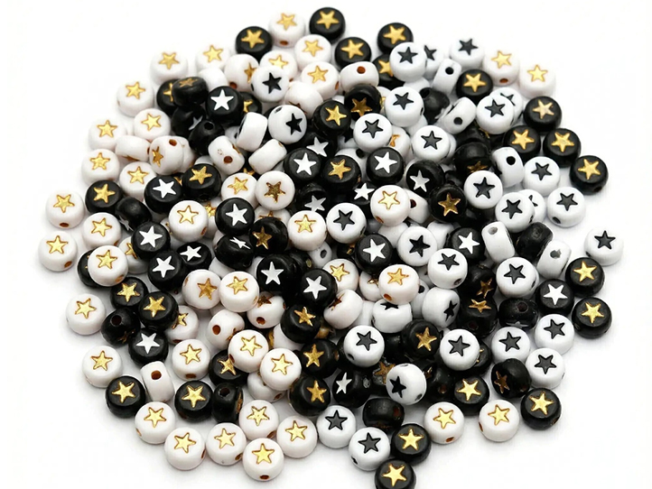 Cuentas plasticas pastilla negra estrella blanca Cuentas plasticas pastilla negra estrella blanca