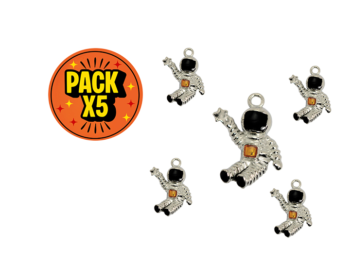 DIJE ESMALTADO x5unid. ASTRONAUTA c/ESTRELLA PLATEADO (DB)