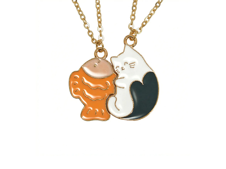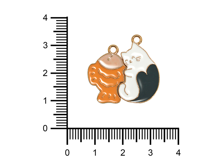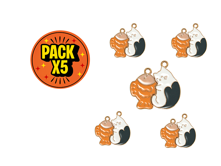 DIJE ESMALTADO x5unid. GATITO Y PEZ PARTIDO (DB)