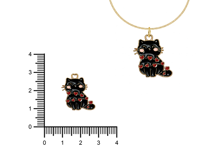 DIJE ESMALTADO x5unid. GATO NEGRO c/CORAZONES (DB)