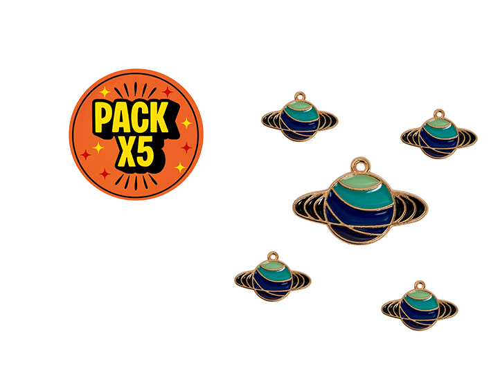 Dije Esmaltado Planeta Dorado x 5 unidadesDije Esmaltado Planeta Dorado x 5 unidades