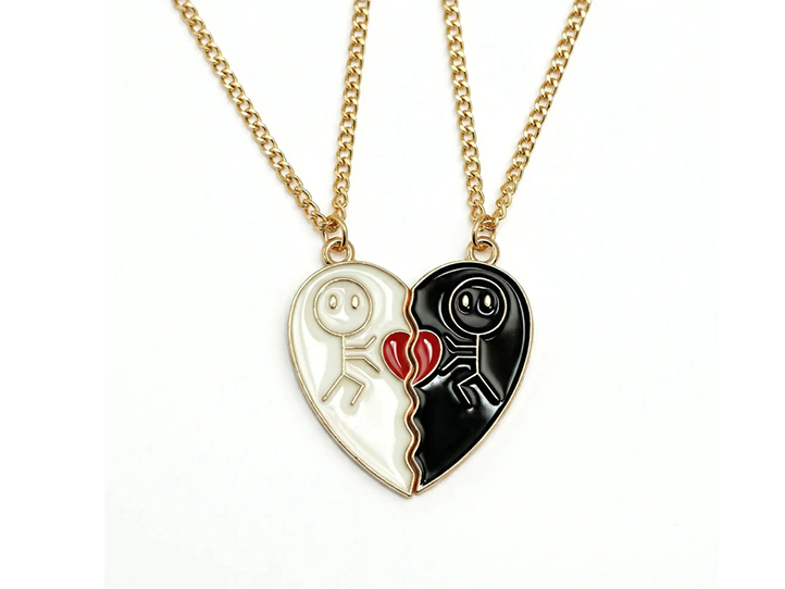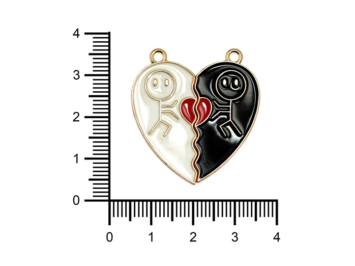 DIJE ESMALTADO x5unid. CORAZON PARTIDO NEGRO Y BLANCO (DB)