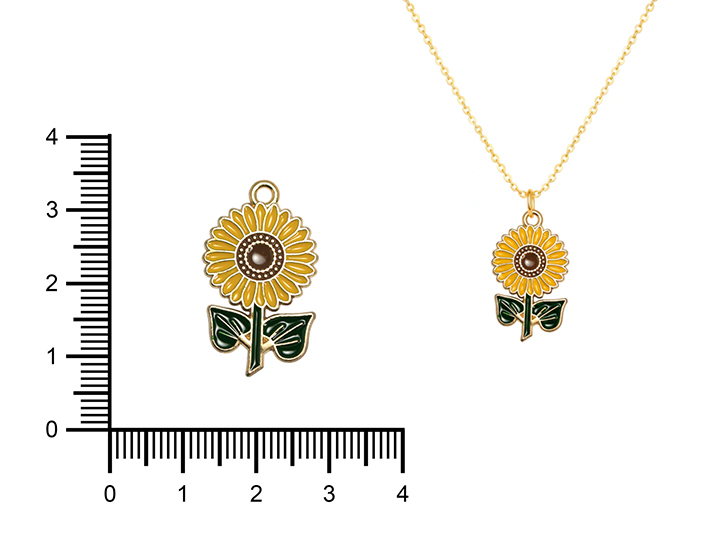 DIJE ESMALTADO x5unid. GIRASOL c/HOJAS (DB)