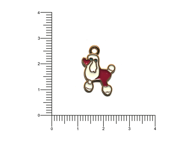 DIJE ESMALTADO x5unid. PERRITO PUDDLE BLANCO c/CORAZON ROJO (DB)