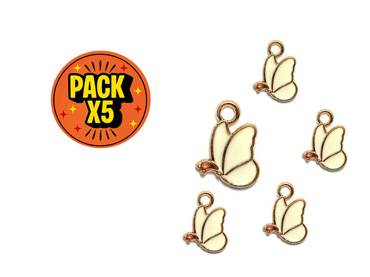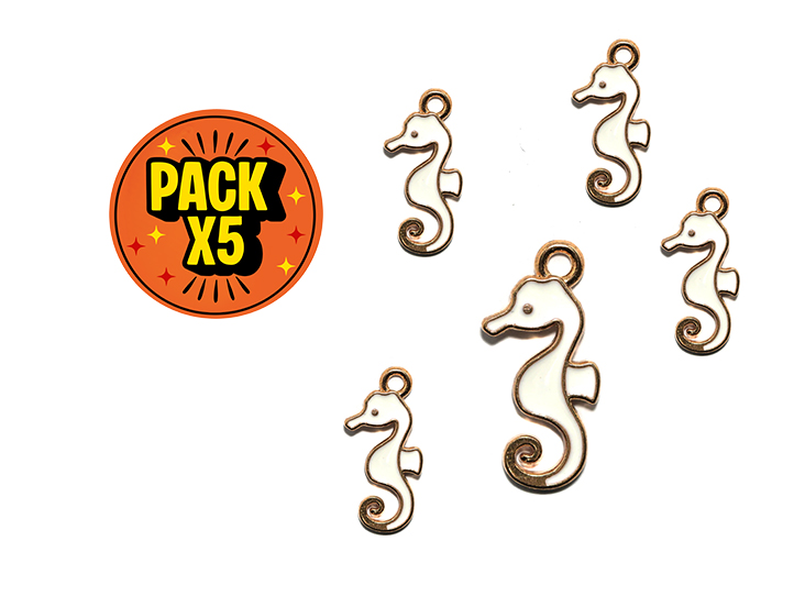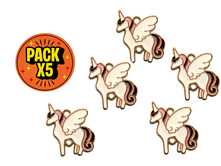 DIJE ESMALTADO x5unid. UNICORNIO BLANCO c/DORADO DOBLE AGARRE (DB)