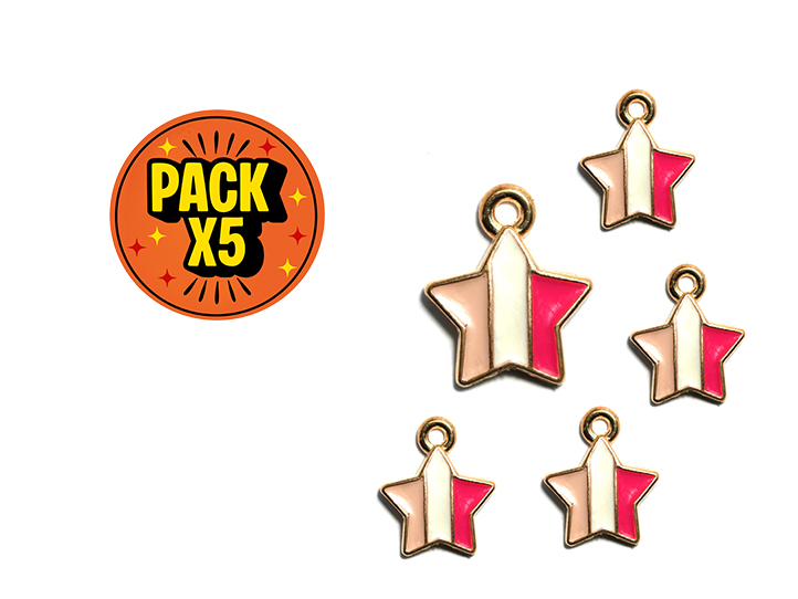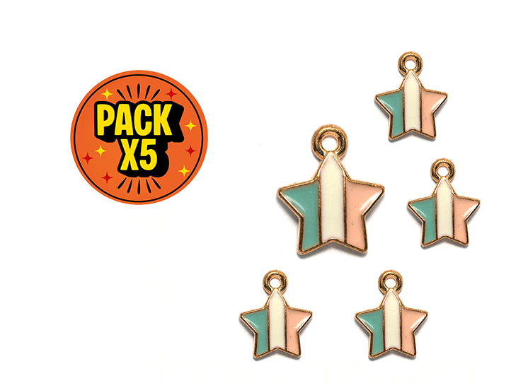 DIJE ESMALTADO x5unid. ESTRELLA MULTICOLOR MODELO 2 CHICA c/DORADO (DB)