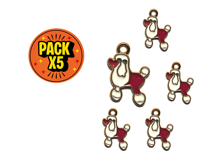 DIJE ESMALTADO x5unid. PERRITO PUDDLE BLANCO c/CORAZON ROJO (DB)