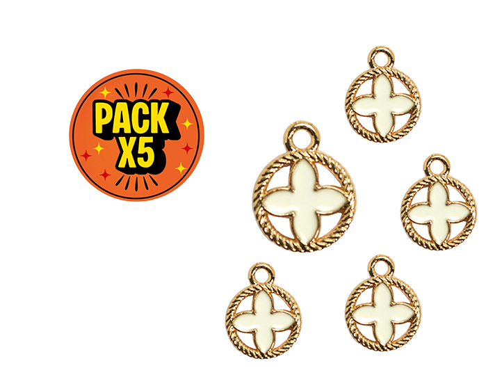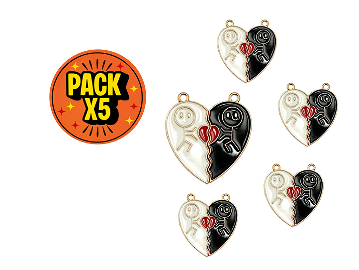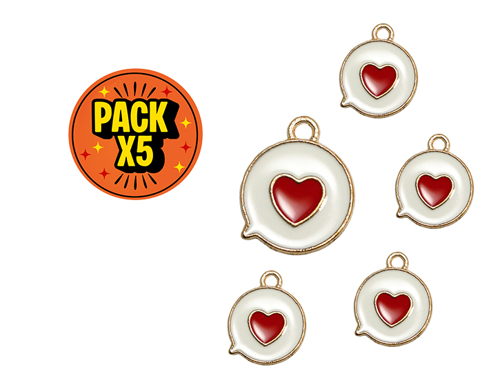 DIJE ESMALTADO x5unid. DIALOGO BLANCO c/DORADO + CORAZON ROJO (DB)