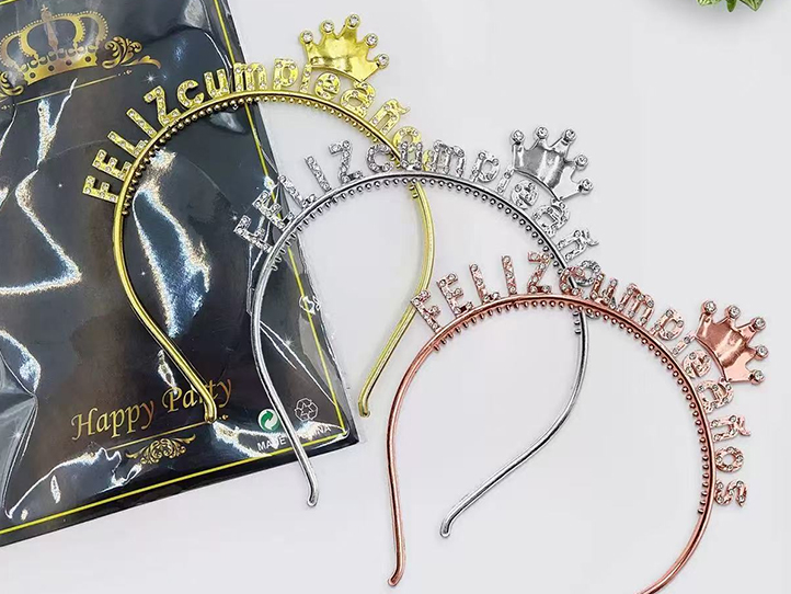 VINCHA FELIZ CUMPLEAÑOS CON STRASS + CORONA