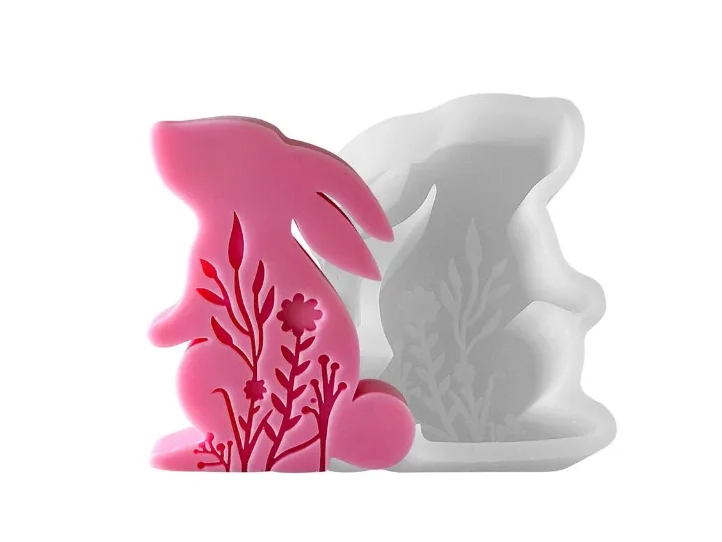 MOLDE SILICONA CONEJO SENTADO c/FLORES (BM3706) (CNA)
