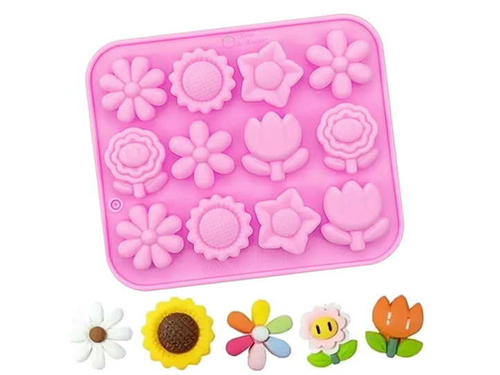 MOLDE SILICONA 6 MODELOS FLORES DIFERENTES (LIS)