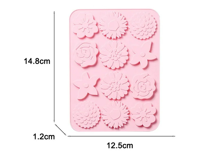 MOLDE SILICONA PARA 12 BOMBONES FLORES PLANAS