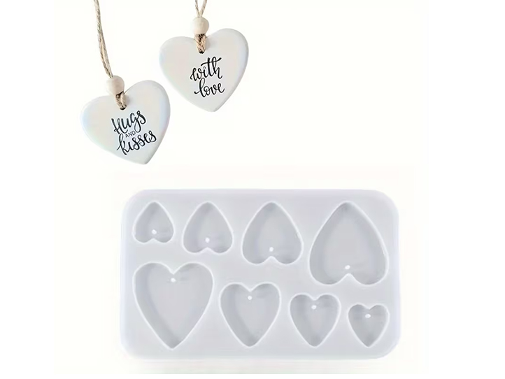 Molde silicona 8 aritos corazonesMolde silicona 8 aritos corazones