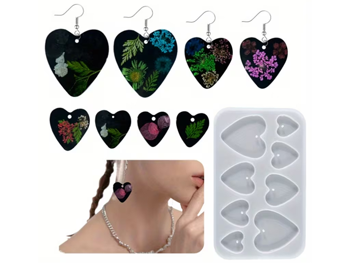 MOLDE SILICONA p/RESINA 8 ARITOS CORAZON (7090) (CS)