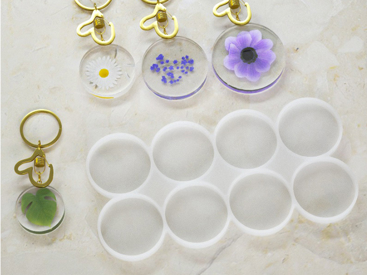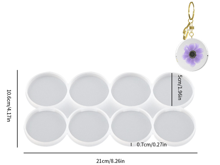 MOLDE SILICONA p/RESINA 8 CIRCULOS p/LLAVEROS GRANDES (4246) (CNA)