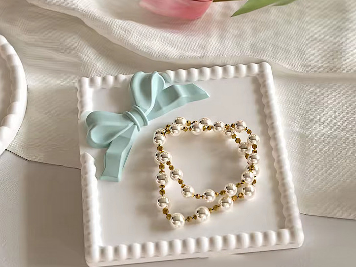 Modelo: PLATO O BANDEJA CUADRADA CON BORDES REDONDEADOS Y MOÑO DIAGONAL