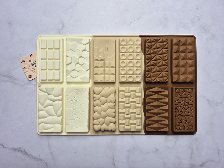 MOLDE SILICONA TRICOLOR p/12 TABLETAS CHOCOLATE DIFERENTES MODELOS (1660) (CS2)
