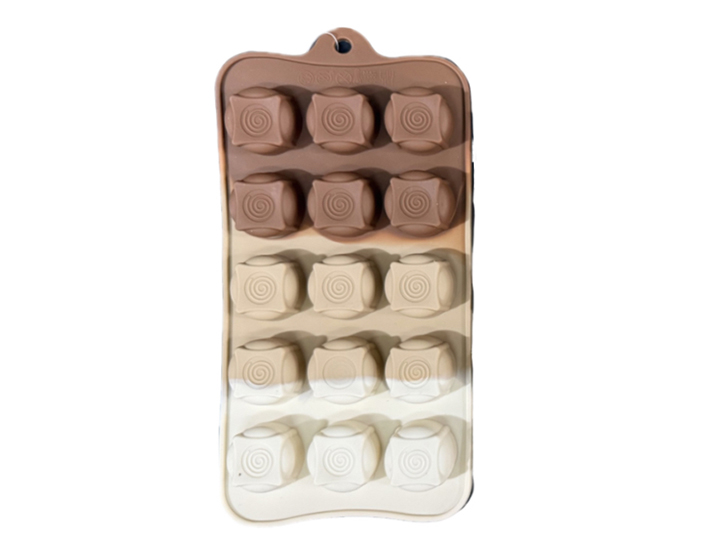 MOLDE SILICONA TRICOLOR p/15 BOMBONES CIRCULO c/CUADRADO ESPIRAL (CS)