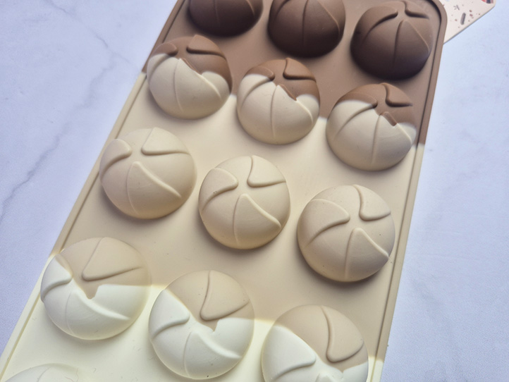 MOLDE SILICONA TRICOLOR p/15 BOMBONES MODELO MEDIA PELOTA (5195) (CS2)