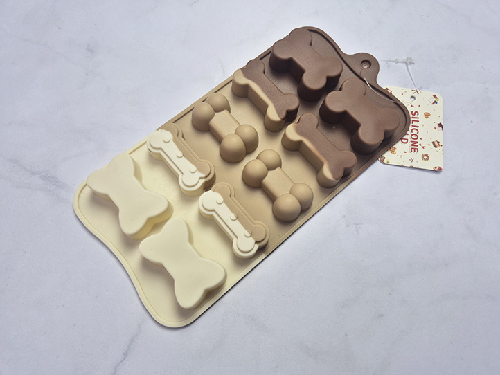 MOLDE SILICONA TRICOLOR 10 BOMBONES HUESOS DISTINTOS PERRO (8K10) (CS)