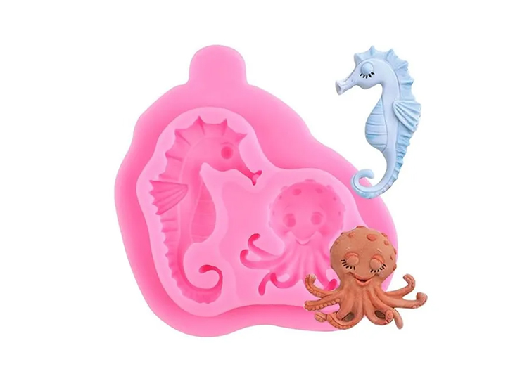 MOLDE SILICONA 2 FIGURAS PULPO y CABALLITO DE MAR (028Y12) (CS2)