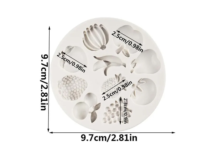 MOLDE SILICONA 10 FIGURAS DE FRUTAS (075) (LIS)