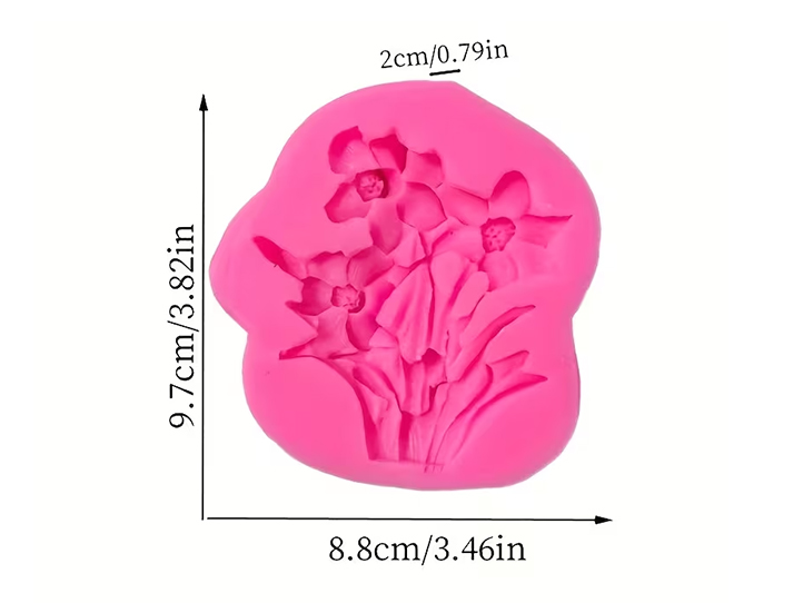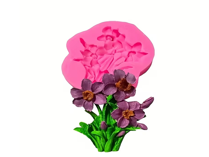 Molde de silicona para hacer 3 flores con hojas y pasto
