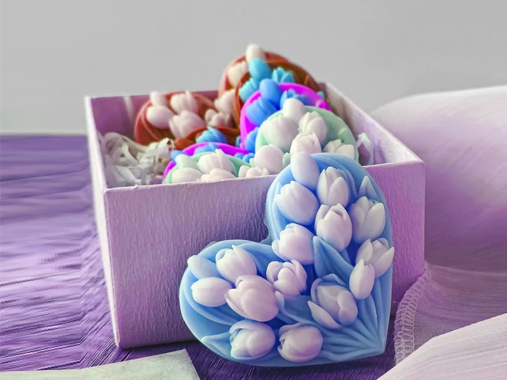 MOLDE SILICONA CORAZON c/RAMO TULIPANES (E027) (LIS)