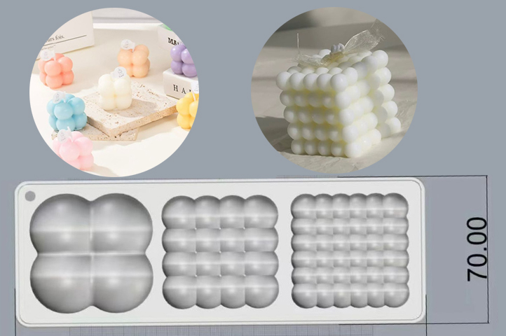 MOLDE SILICONA p/3 VELAS CUBOS DIFERENTES MEDIANO (006B5) (CS)