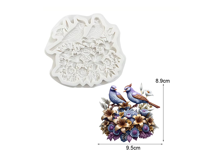 Molde silicona pareja de pajaros con floresMolde silicona pareja de pajaros con flores