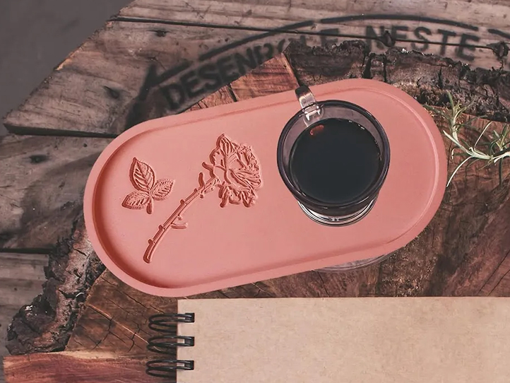 MOLDE SILICONA BANDEJA OVALADA CHICA ROSA c/HOJA (7213) (CSP)